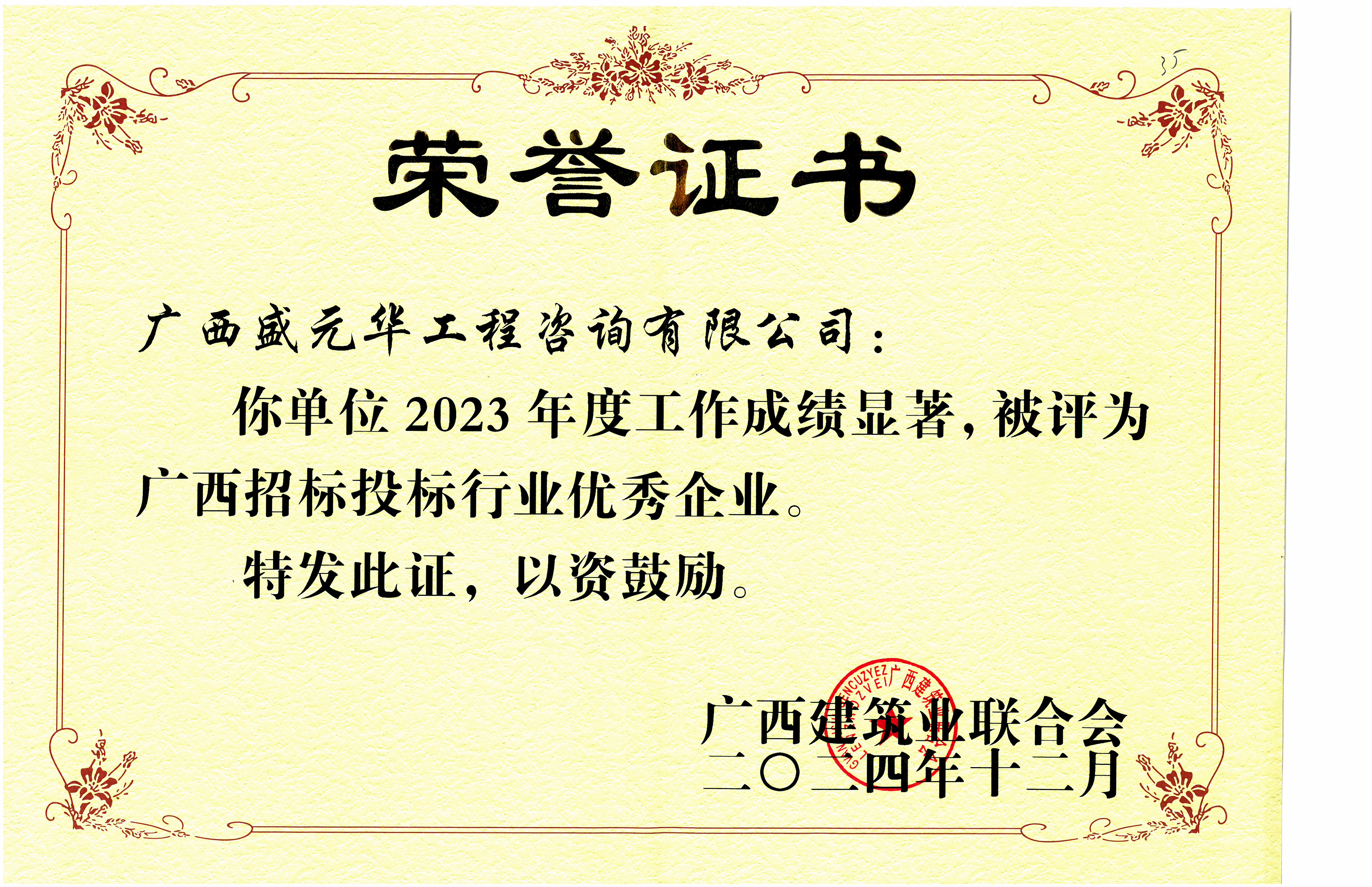 广西盛元华集团受此荣誉的激励,将不负荣誉积极发挥行业模范作用,秉承“诚信为本·有诺必践”的理念,在招投标行业领域继续恪守法规,深耕实干。始终以“顾客至上,质量第一”的工作态度,为广大业主提供最优质的服务!