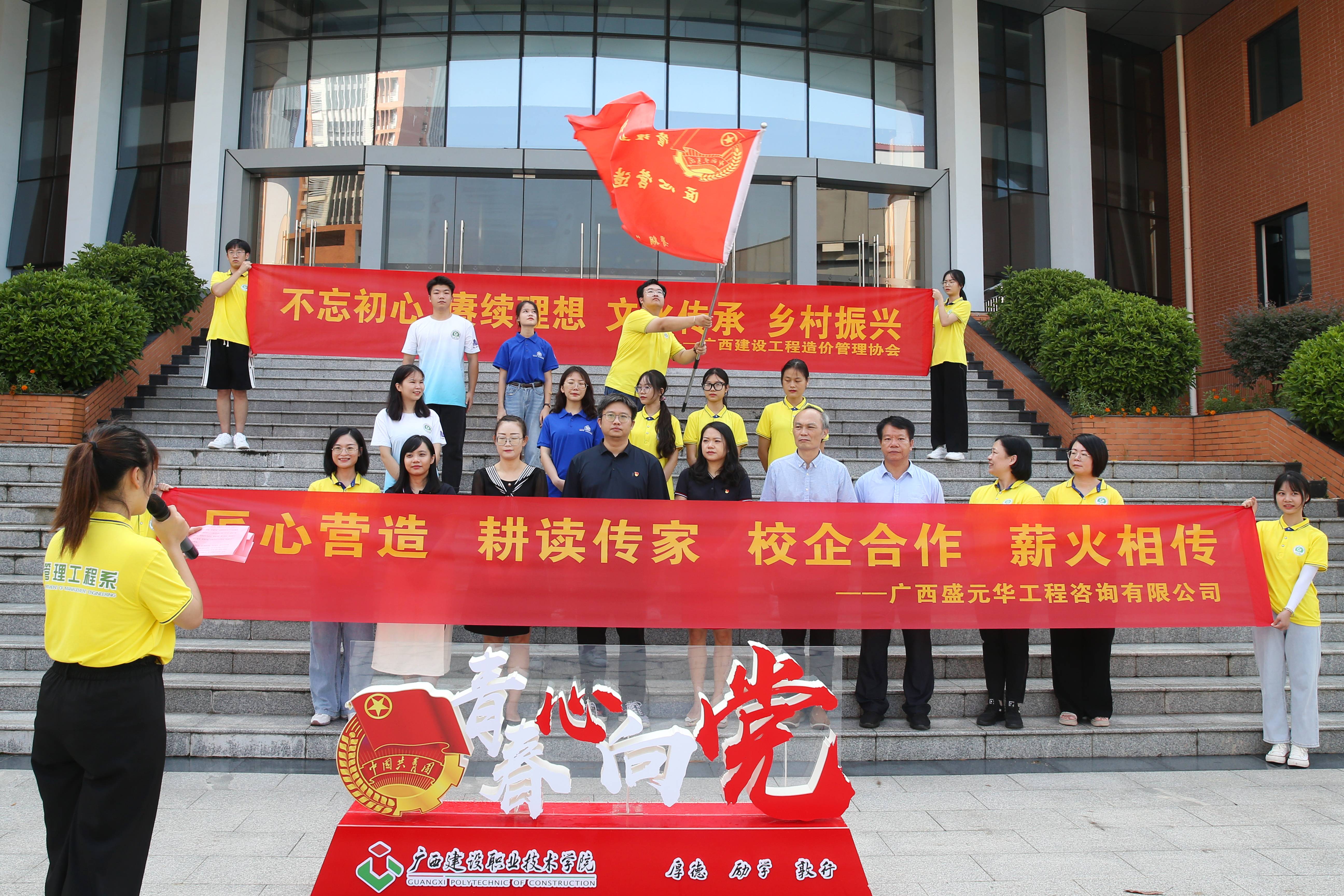 7月26日上午,广西建设职业技术学院管理工程系团总支“匠心营造·耕读传家”古建筑文化传承实践团再次出征,亚搏网页版-亚搏yabo(中国)(已下简称我公司)副总经理黄艺、BIM中心负责人覃永松作为校企合作企业方代表,与广西建设工程造价管理协会党支部书记王燕蓉、办公室主任杨智、广西建设职业技术学院管理工程系罗辉副主任共同出席出征仪式。本次实践团由管理工程系周慧玲、郭海棠、封炫妃、甘麒燕老师带队。