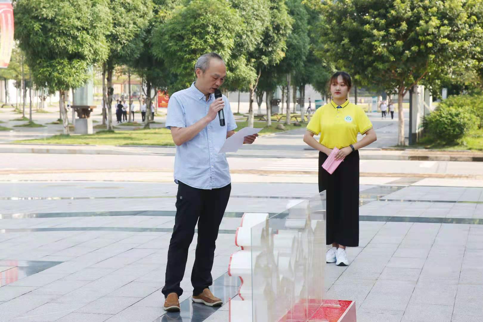 王燕蓉书记在出征仪式上讲话 我公司副总经理黄艺在出征仪式上发言,他对同学们提出三点希望,一是要提高认识、勇于担当责任,积极参与组织开展符合实际的、有“建院特色”的志愿者服务项目,不断丰富和创新活动载体,切实担当起组织者、引导者和实践者的三重责任,全力推进志愿者活动的深入开展;二是要把志愿者服务做实、做真、做到位,让更多人从我们的志愿服务中收益;三是要弘扬奉献、友爱、互助、进步的青年志愿者精神,坚持和祖国同行、为人民奉献,以青春梦想、用实际行动为实现下一个百年的奋斗目标作出更大贡献。