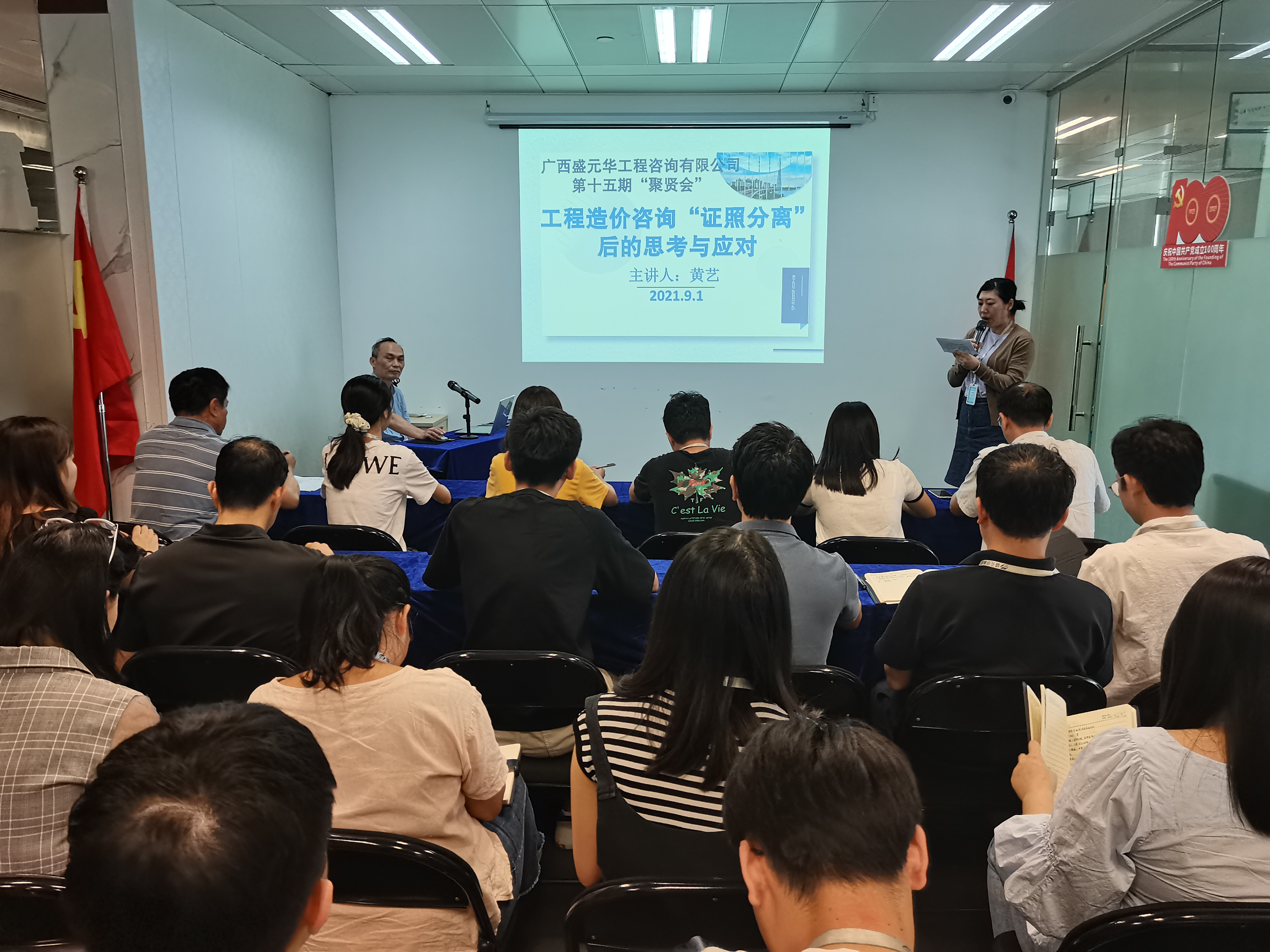 本期聚贤会主题为:工程造价咨询“证照分离”后的思考与应对,由公司副总经理黄艺作为主讲人,就这一行业热点问题,与各位聚友们分享经验,带领大家一起思考和探讨问题。