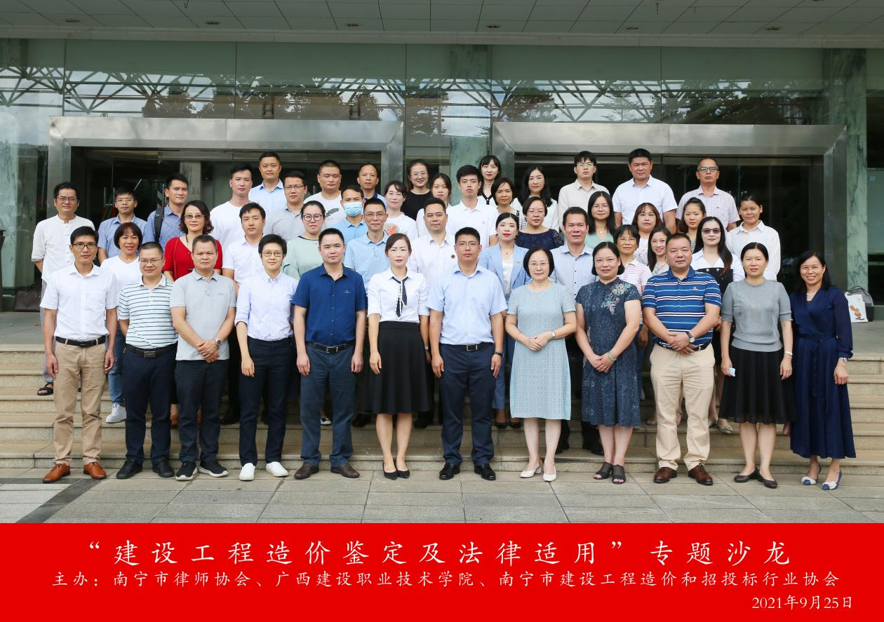 9月25日上午,南宁市律师协会与广西建设职业技术学院、南宁市建设工程造价和招投标行业协会共同开展的“建设工程造价鉴定及法律适用”专题沙龙活动在南宁市司法局成功召开。