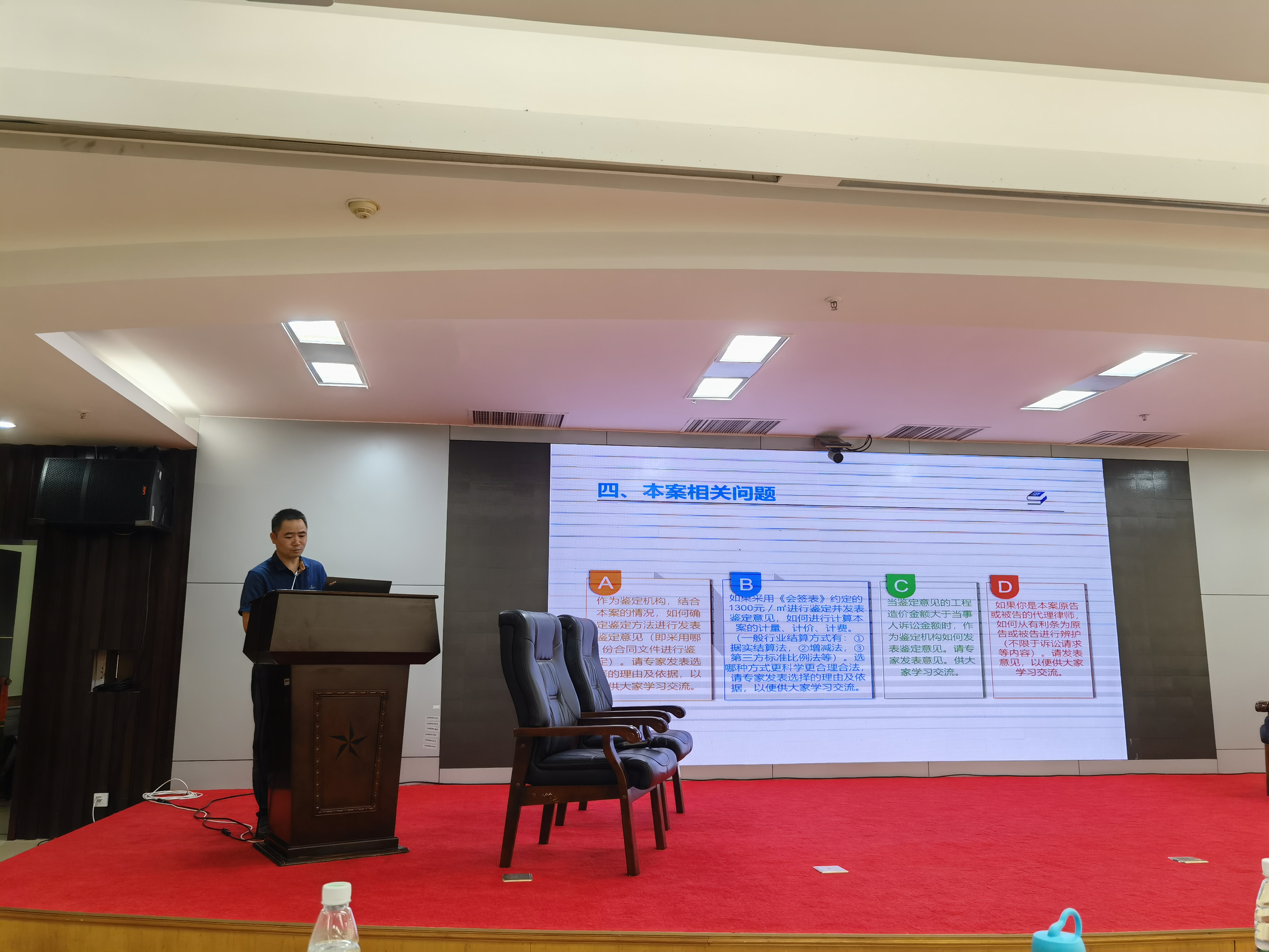 “建设工程造价鉴定及法律适用”专题沙龙活动现场(一) 本次活动由南宁市律师协会房地产及建筑工程专业委员会副主任殷迪佳主持,我公司常务副总经理谢莹春、陆冬副总经理受邀出席专题沙龙活动并做“案例分享”,彰显了我公司在工程造价司法鉴定实践中所取得的成就。出席本次活动嘉宾还有南宁市建设工程造价和招投标行业协会、南宁市住房和城乡建设局、南宁市律师协会、南宁市律师协会房地产及建筑工程专业委员会、广西建设职业技术学院管理工程系、广西瑞真工程造价咨询有限责任公司等相关单位的领导、行业专家、律师及院校教师。