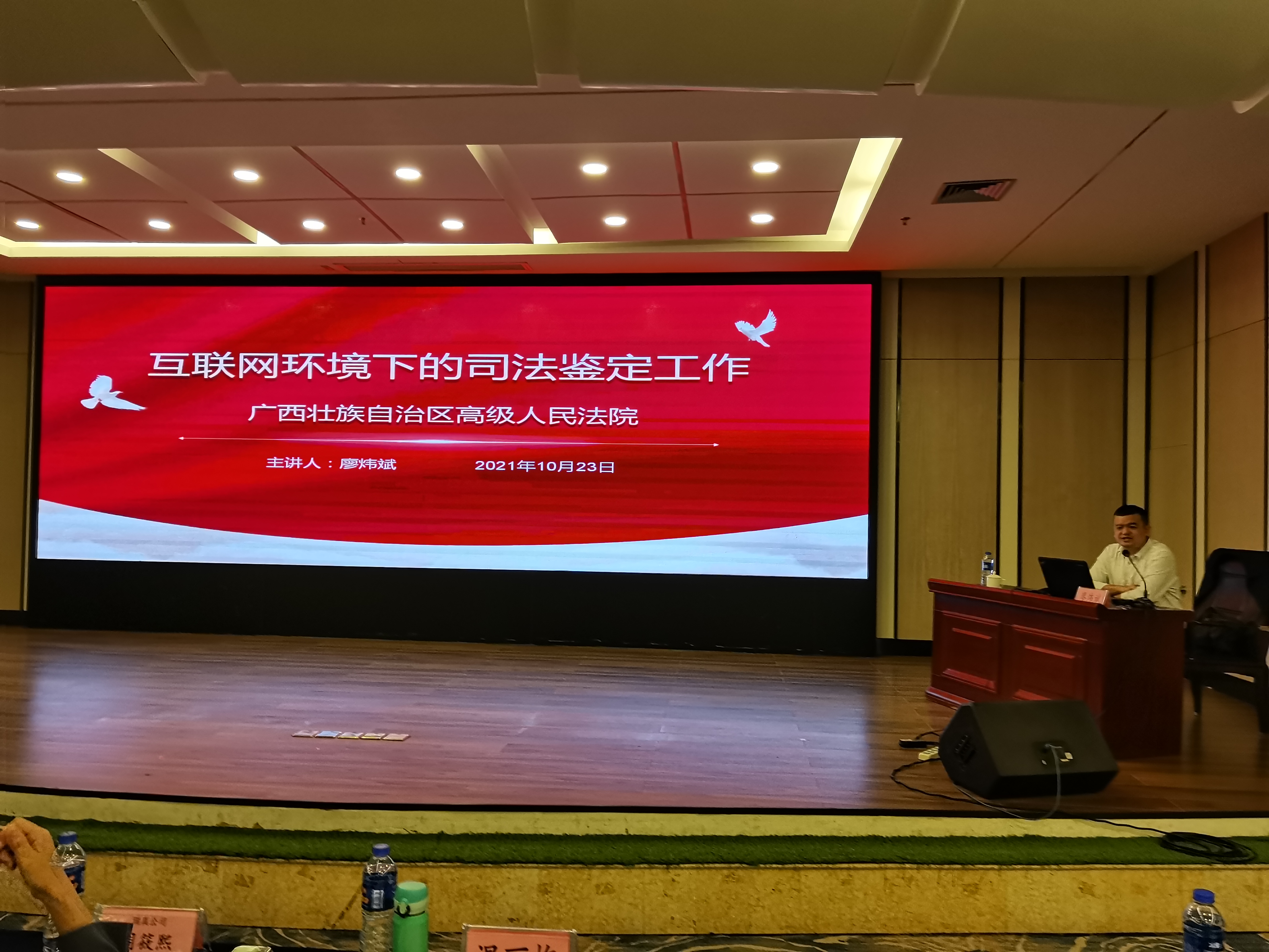 自治区高级人民法院技术处副处长廖炜斌进行授课 随后负责该软件开发的技术人员吕工详细介绍了人民法院委托鉴定系统操作流程,让参会的学员对人民法院对外委托鉴定工作的程序及系统有了更进一步的了解。